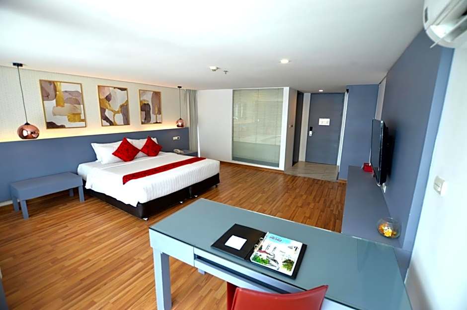 PREMIER DELUXE is 366 square feet and includes either a queen-size bed 150-154 width or 2 single beds 80-130 width plus extra beds on demand.